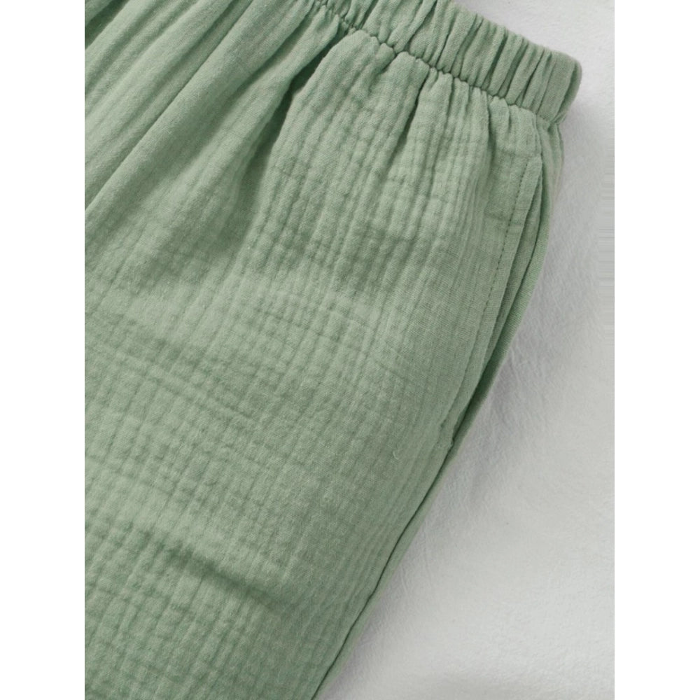 Amfyn Boy's Popcorn Solid Short Sleeve Shirt And Shorts Set (Pista)