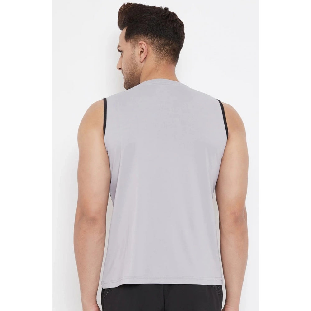 Amfyn Men's Striped Polyester Sleeveless T.Shirt (Grey)