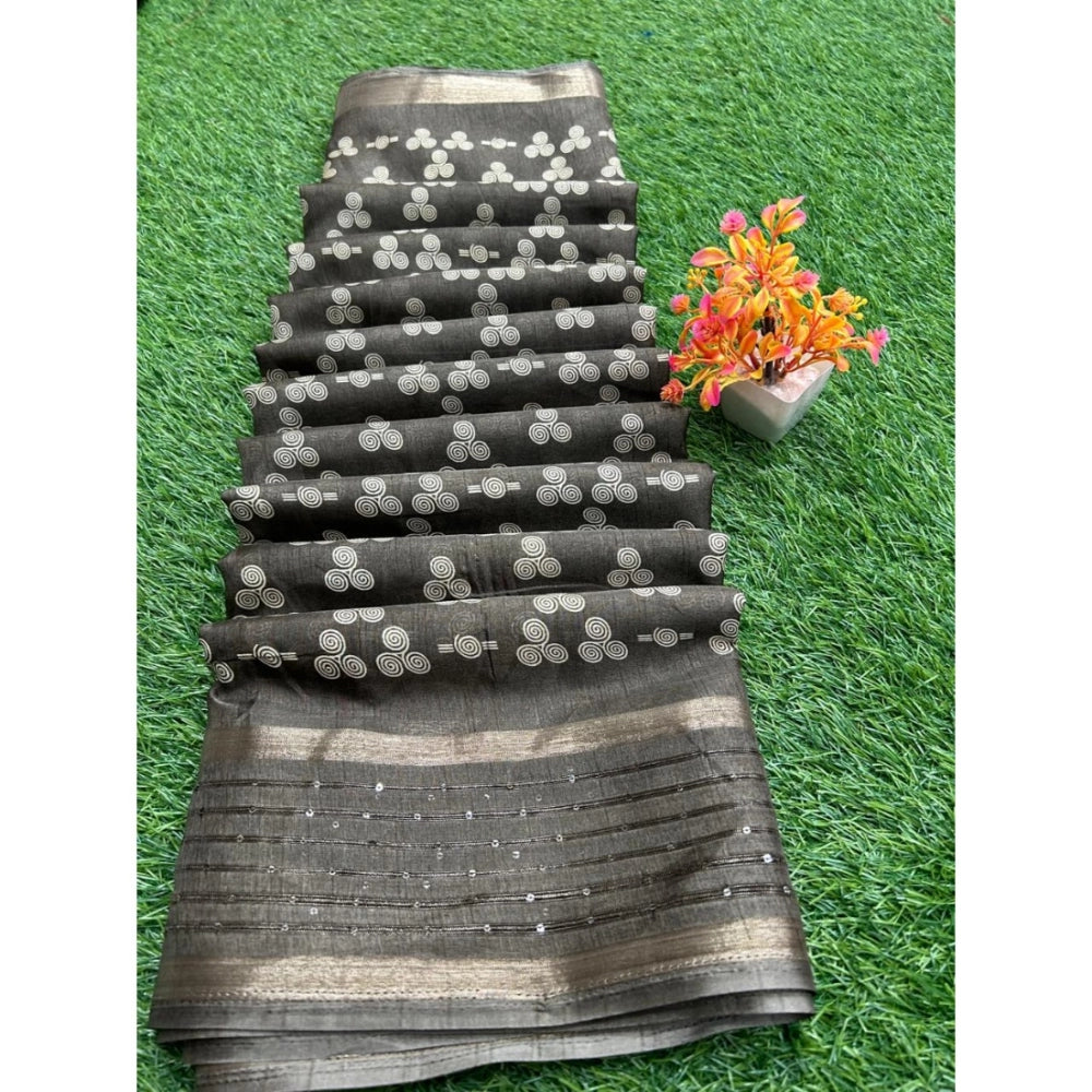 Amfyn Women's Art Silk Printed Saree With Unstitched Blouse (Black, 5-5 Mtrs)