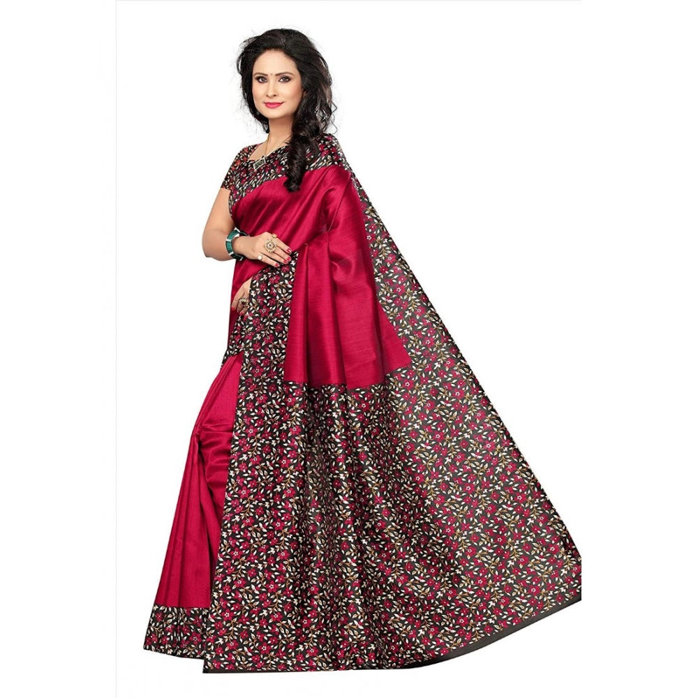 Women's Art Silk Saree With Blouse (Red, 5-6mtrs)