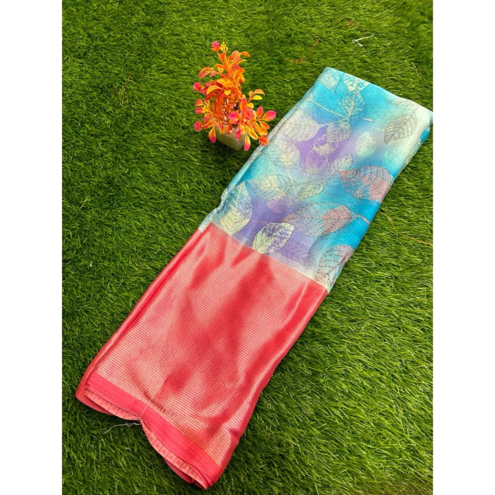 Women's Brasso Printed Saree With Unstitched Blouse