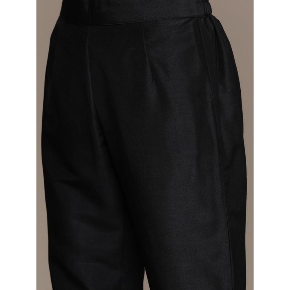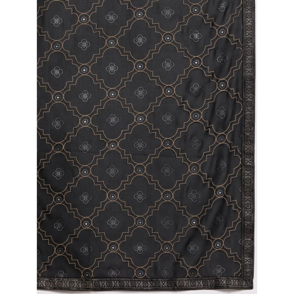Amfyn Women's Casual 3-4Th Sleeve Border Crepe Kurti Pant And Dupatta Set (Black)