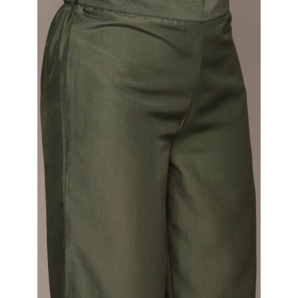 Amfyn Women's Casual 3-4Th Sleeve Floral Printed Chanderi Cotton Kurti Palazzo And Dupatta Set (Green)