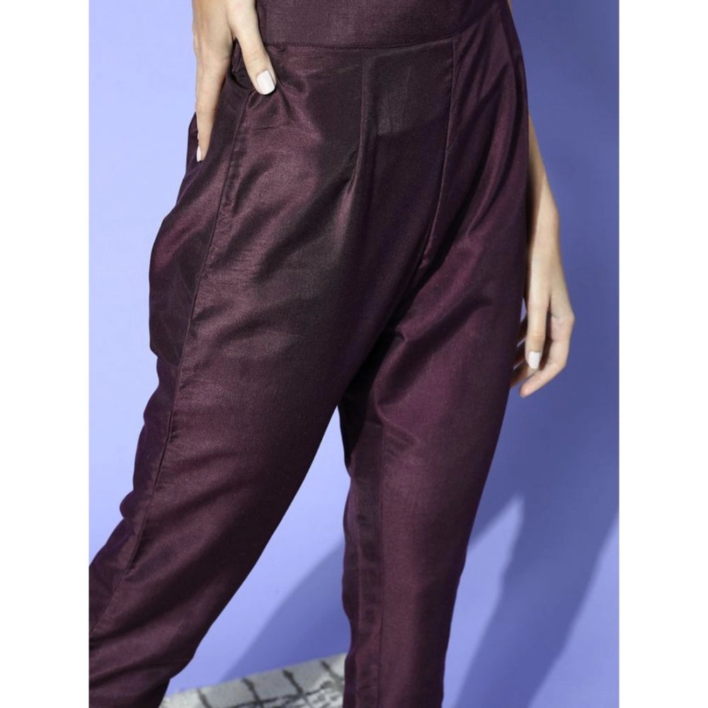 Amfyn Women's Casual 3-4Th Sleeve Floral Printed Chinon Kurti And Pant Set (Wine & Purple)