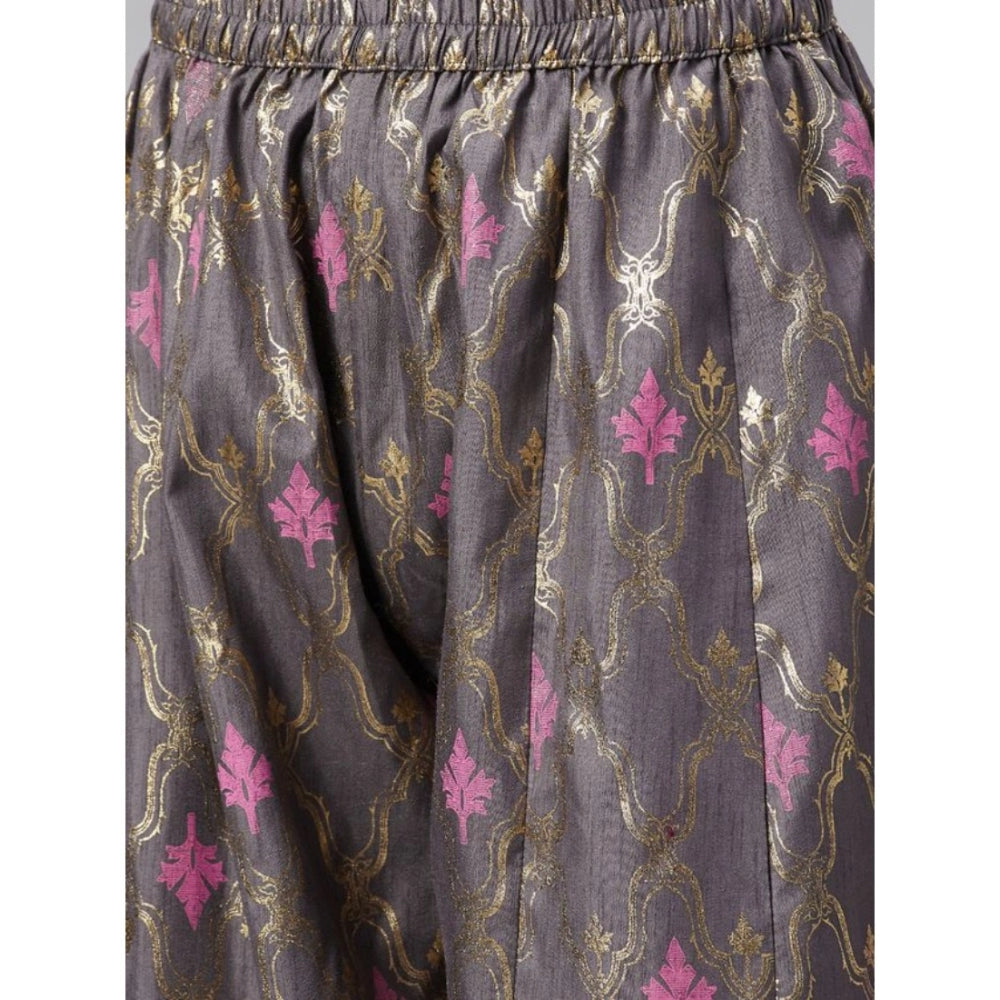 Women's Casual 3-4Th Sleeve Floral Printed Poly Silk Kurti And Palazzo Set