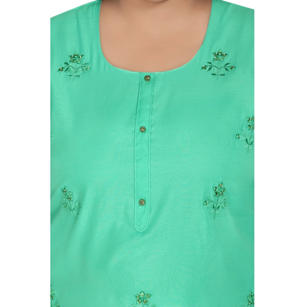 Amfyn Women's Casual 3/4th Sleeve Rayon Mirror Embroidered Straight Kurti (Green)