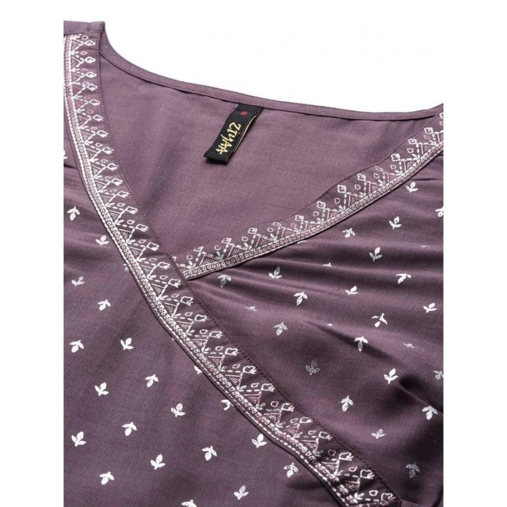 Amfyn Women's Casual 3-4Th Sleeve Small Butti Chinon Kurti And Pant Set (Purple)