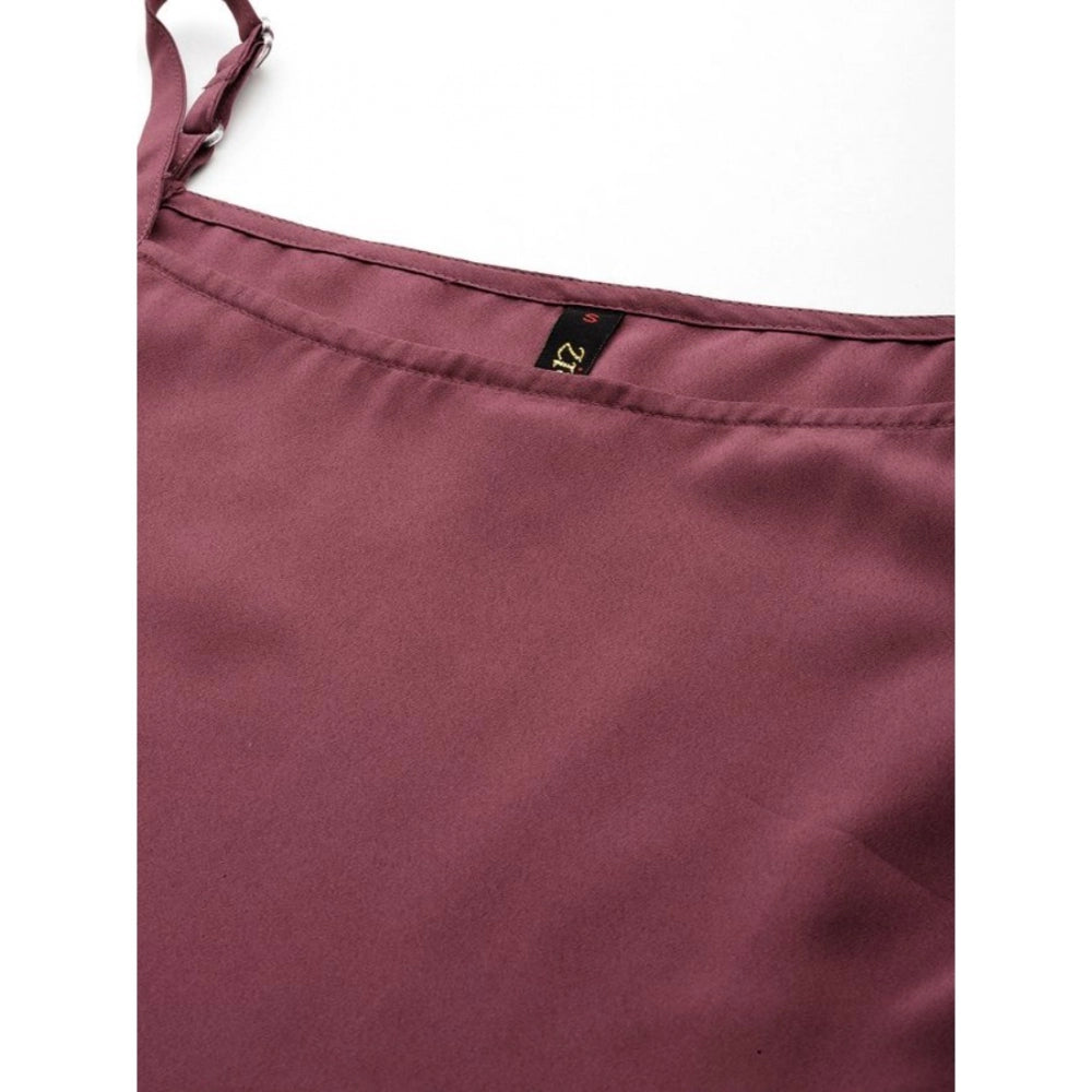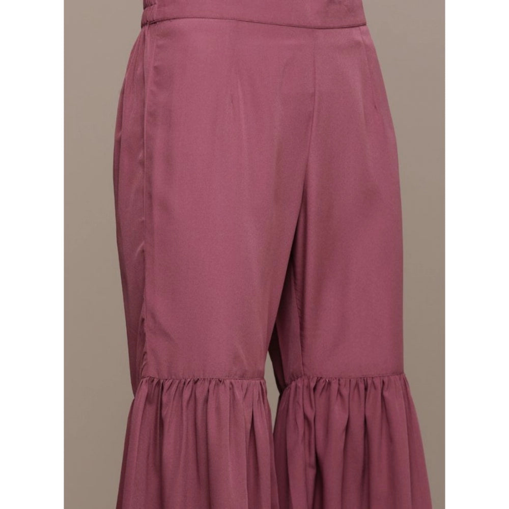 Amfyn Women's Casual Sleeveless Ethnic Motifs Crepe Kurti Sharara And Dupatta Set (Brown)
