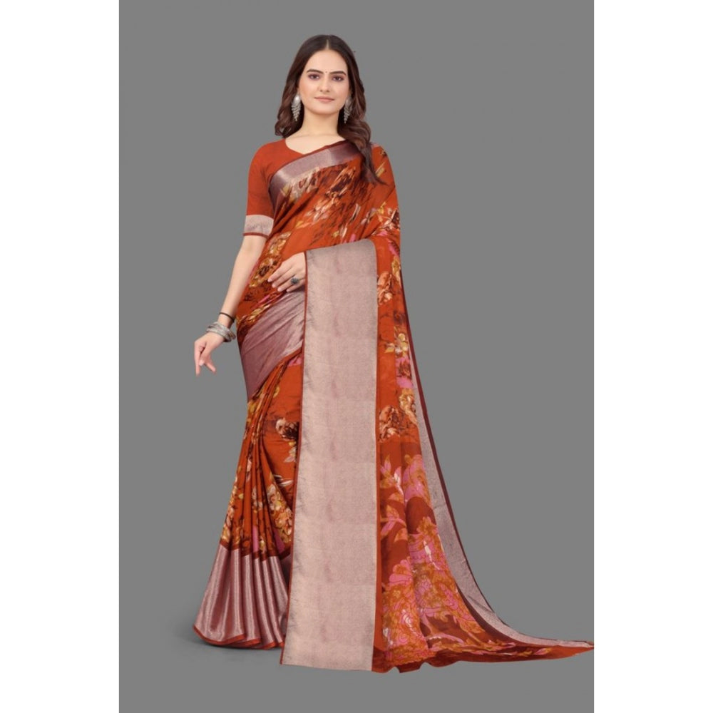 Women's Chiffon Printed Saree With Unstitched Blouse