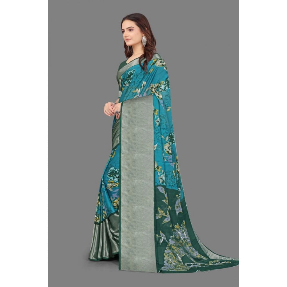 Amfyn Women's Chiffon Printed Saree With Unstitched Blouse (Sky Blue, 5-5 Mtrs)