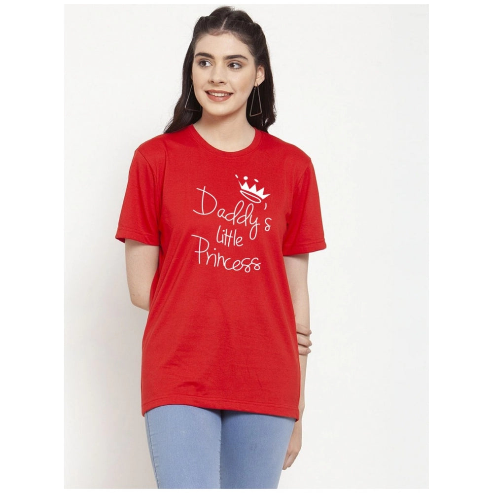 Amfyn Women's Cotton Blend Daddy's Little Princess Printed T-Shirt (Red)