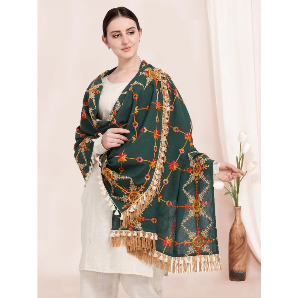 Amfyn Women's Cotton Embroidered Dupatta (Green, Length: 0.5 to 1 Mtr)