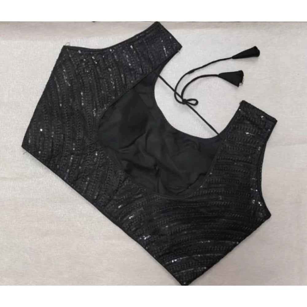 Amfyn Women's Cotton Silk Embellished Padded Cup Readymade Blouse (Black, Size: Free Size)