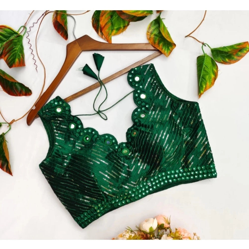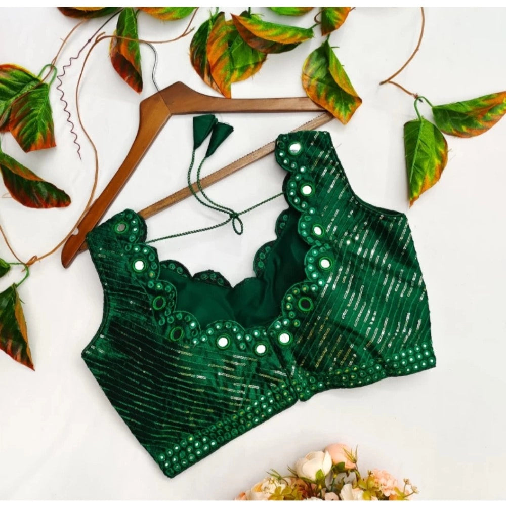 Amfyn Women's Cotton Silk Embellished Padded Cup Readymade Blouse (Green, Size: Free Size)