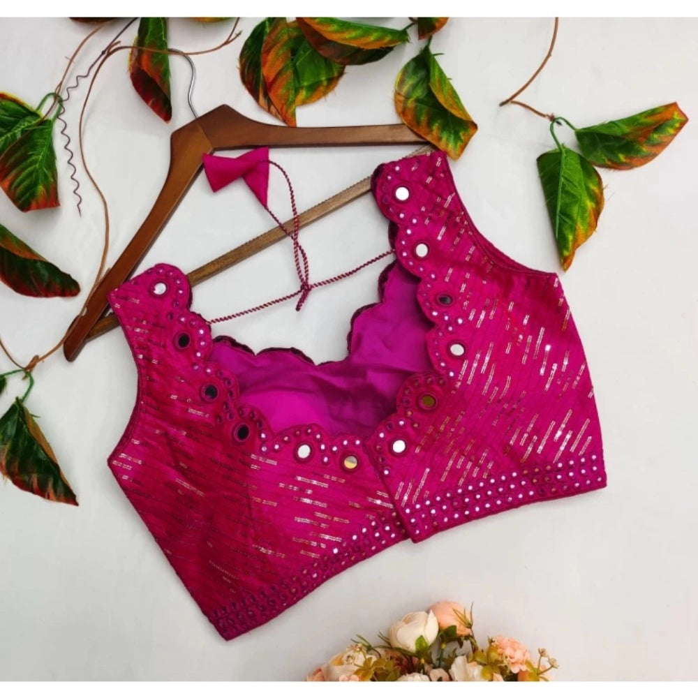 Amfyn Women's Cotton Silk Embellished Padded Cup Readymade Blouse (Rani, Size: Free Size)