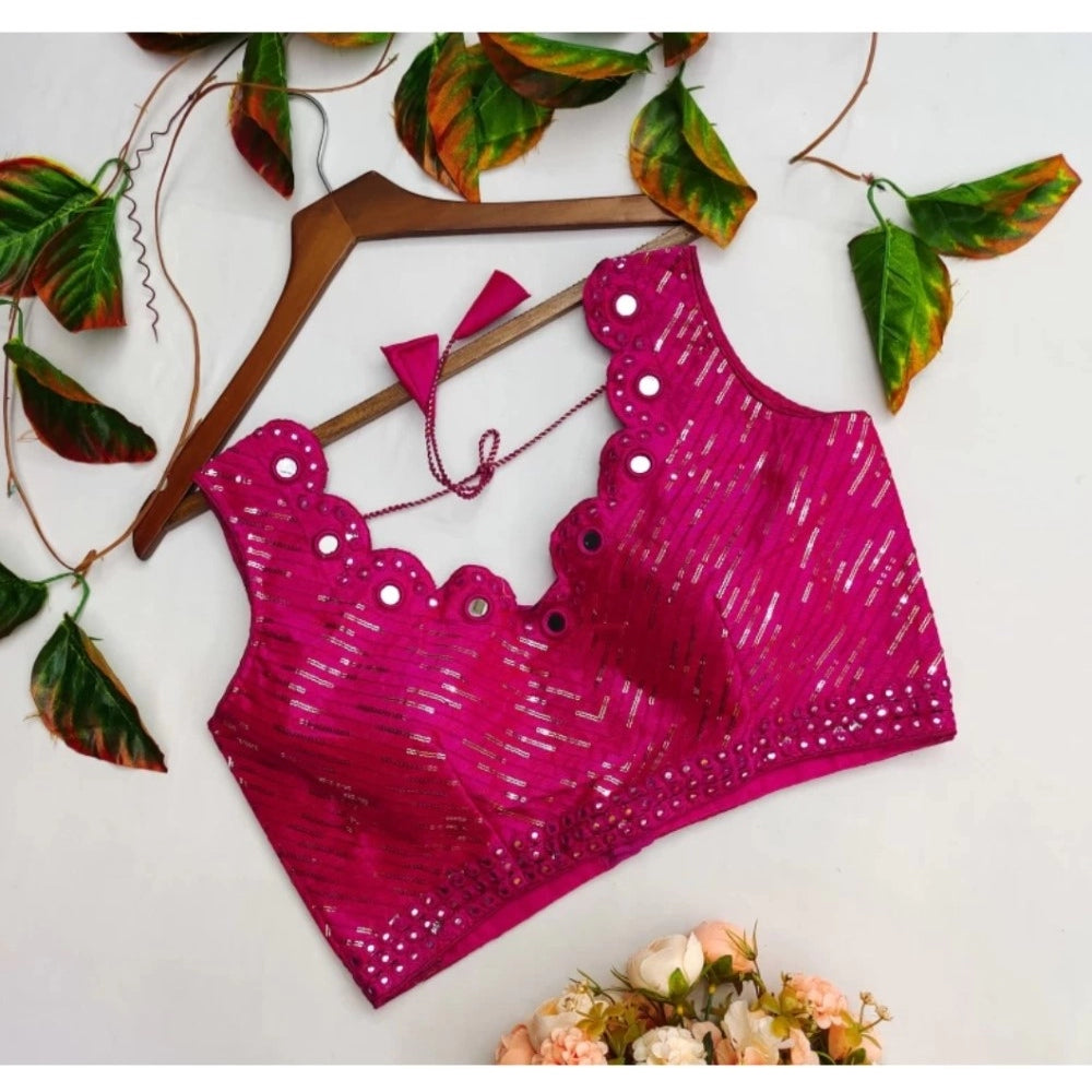 Women's Cotton Silk Embellished Padded Cup Readymade Blouse