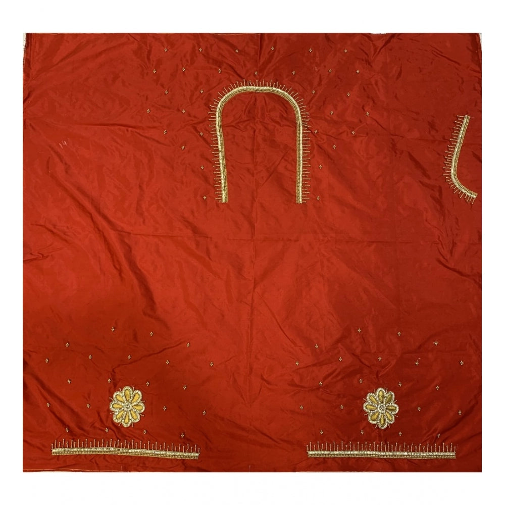 Amfyn Women's Cotton Silk Printed Unstitched Blouse Piece (Red, 80-100 cm)