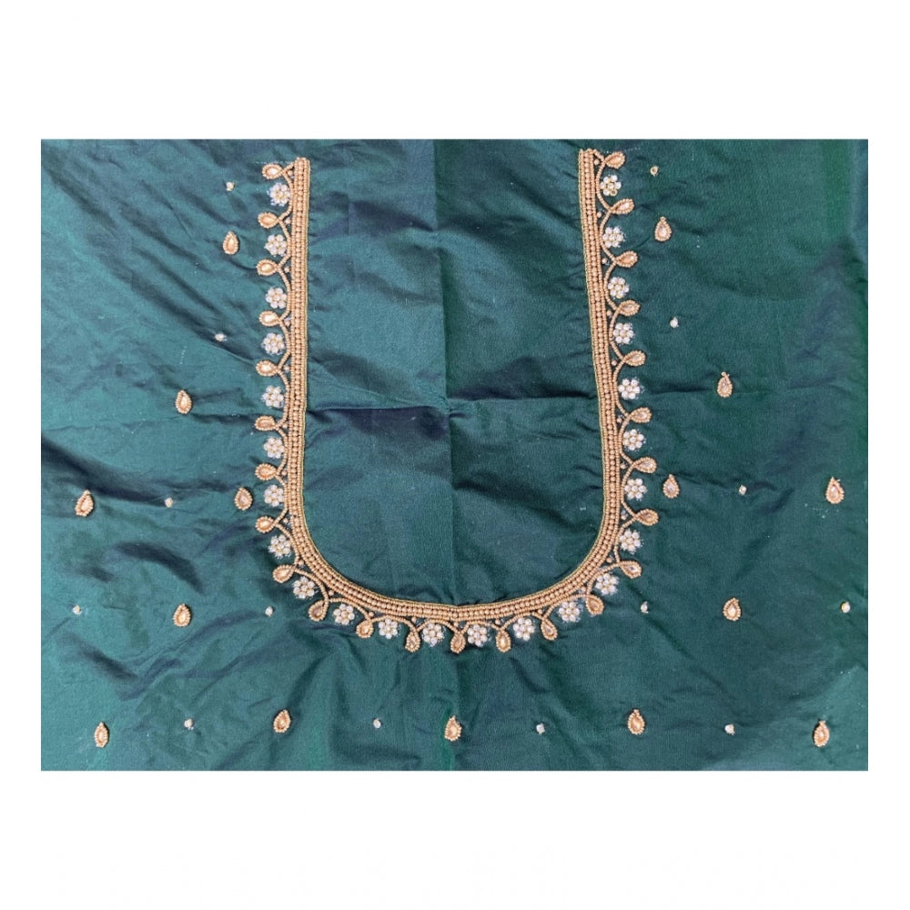 Amfyn Women's Cotton Silk Self Design Unstitched Blouse Piece (Green, 80-100 cm)