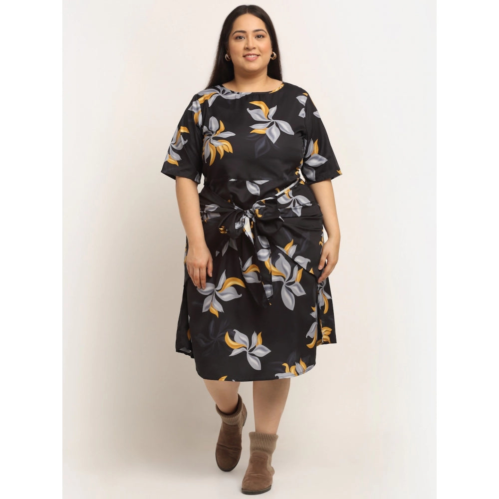 Amfyn Women's Crepe Printed Knee Length Fit and Flare Dress (Multi)