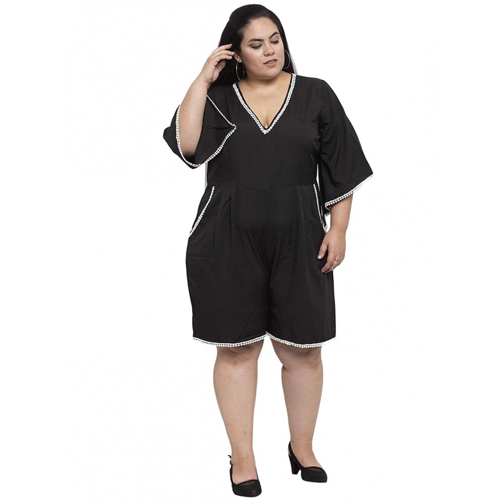 Women's Crepe Solid Knee Length Fit and Flare Dress (Black)