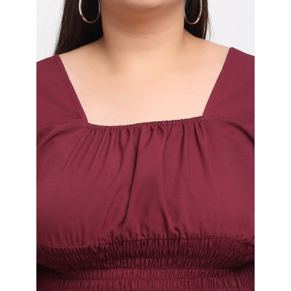 Women's Crepe Solid Knee Length Fit and Flare Dress (Maroon)