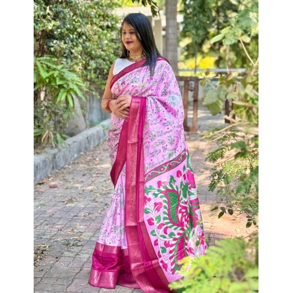 Amfyn Women's Dola Silk Printed Saree With Unstitched Blouse (Pink, 5-5 Mtrs)