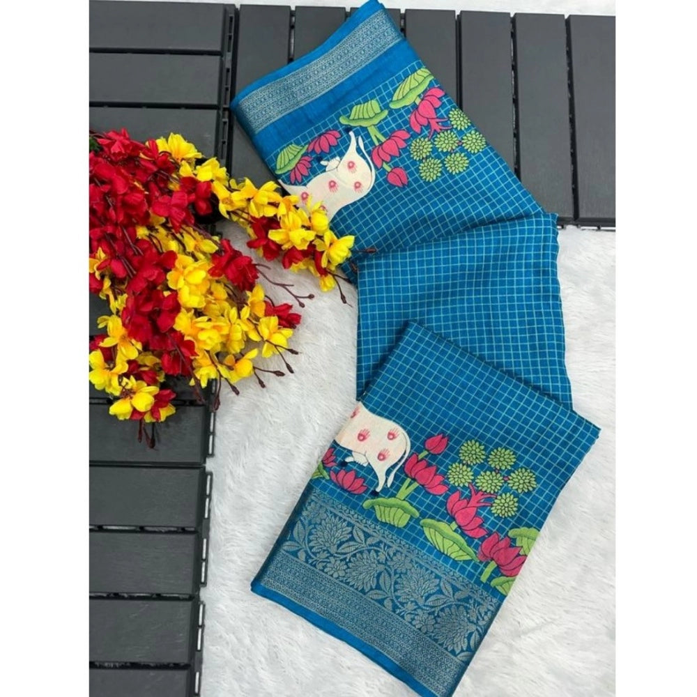 Amfyn Women's Dola Silk Printed Saree With Unstitched Blouse (Sky Blue, 5-5 Mtrs)