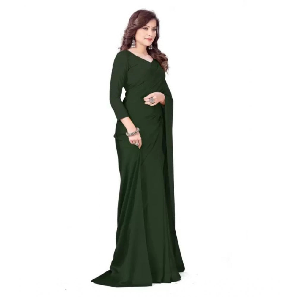 Amfyn Women's Georgette Solid Saree With Unstitched Blouse (Green, 5-5 Mtrs)