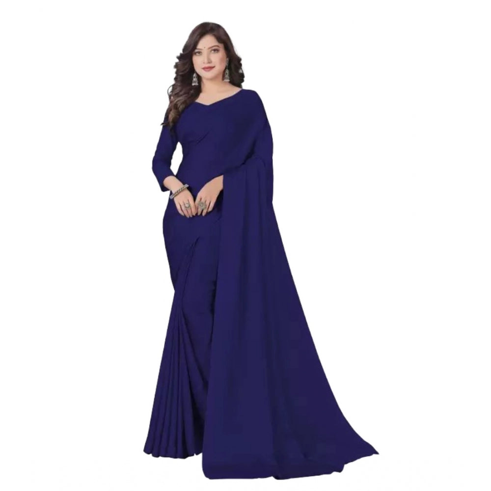 Amfyn Women's Georgette Solid Saree With Unstitched Blouse (Navyblue, 5-5 Mtrs)