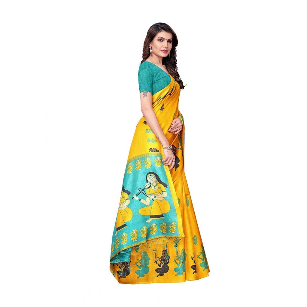 Women's Khadi Silk Saree With Blouse (Yellow, 5-6mtrs)