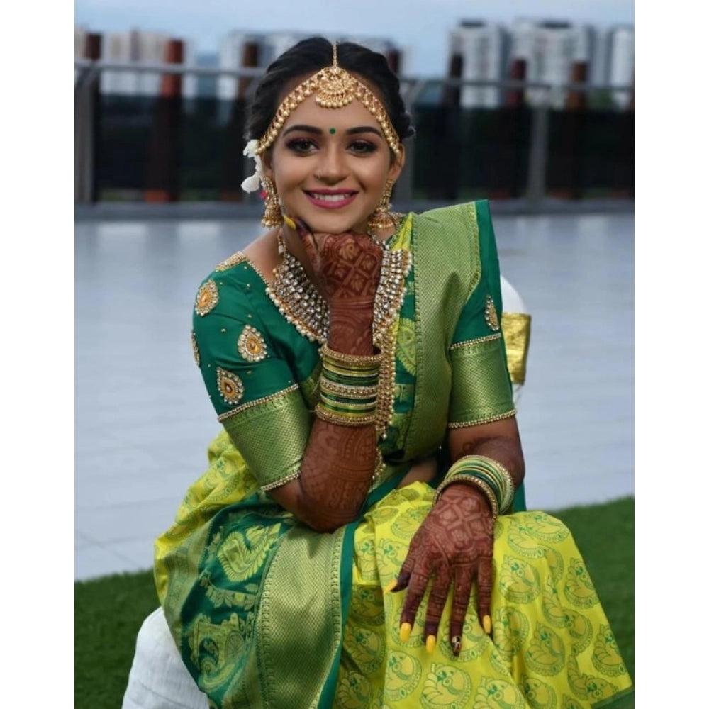 Amfyn Women's Litchi silk Printed Saree With Unstitched Blouse (Light Green)