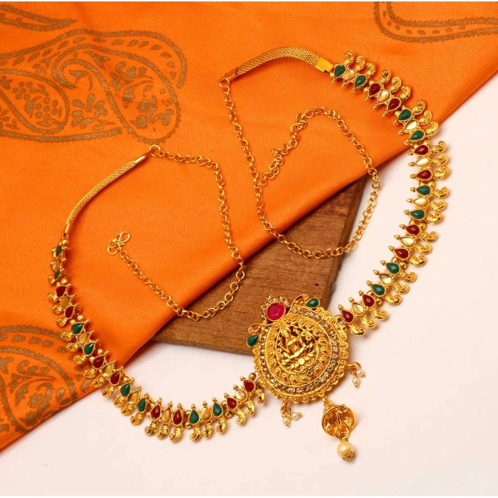 Fashion Women's Maroon & Green Color Glass Stone Kamarband Adjustable Chain