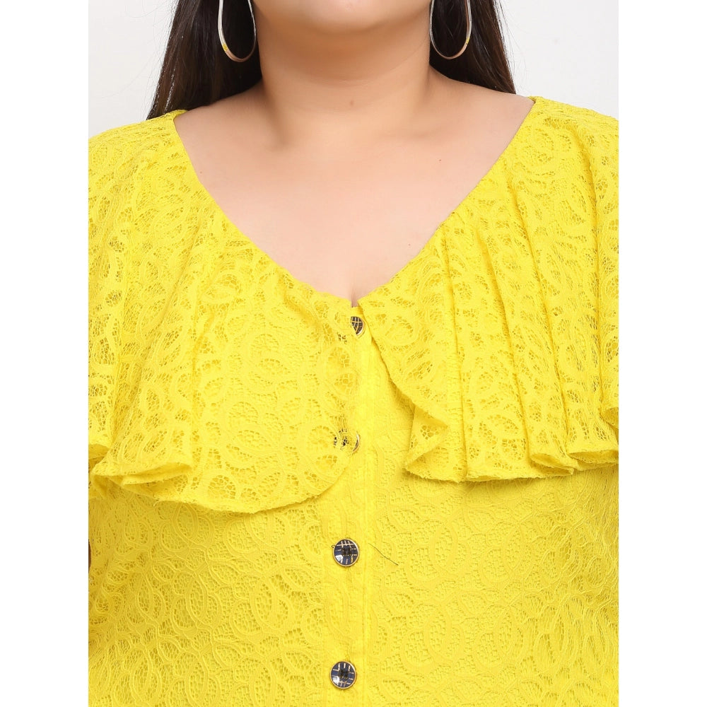 Women's Net Solid Knee Length Fit and Flare Dress (Yellow)