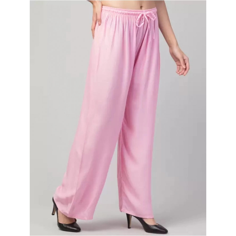 Amfyn Women's Plus Size Relaxed Fit Viscose Rayon Palazzo Trousers (Pink)