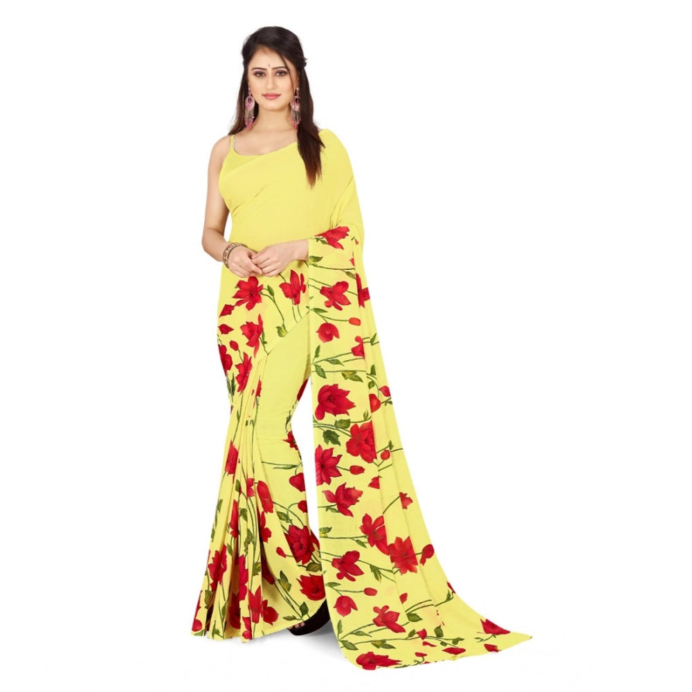 Amfyn Women's Poly Georgette Printed Saree Without Blouse (Light Yellow)