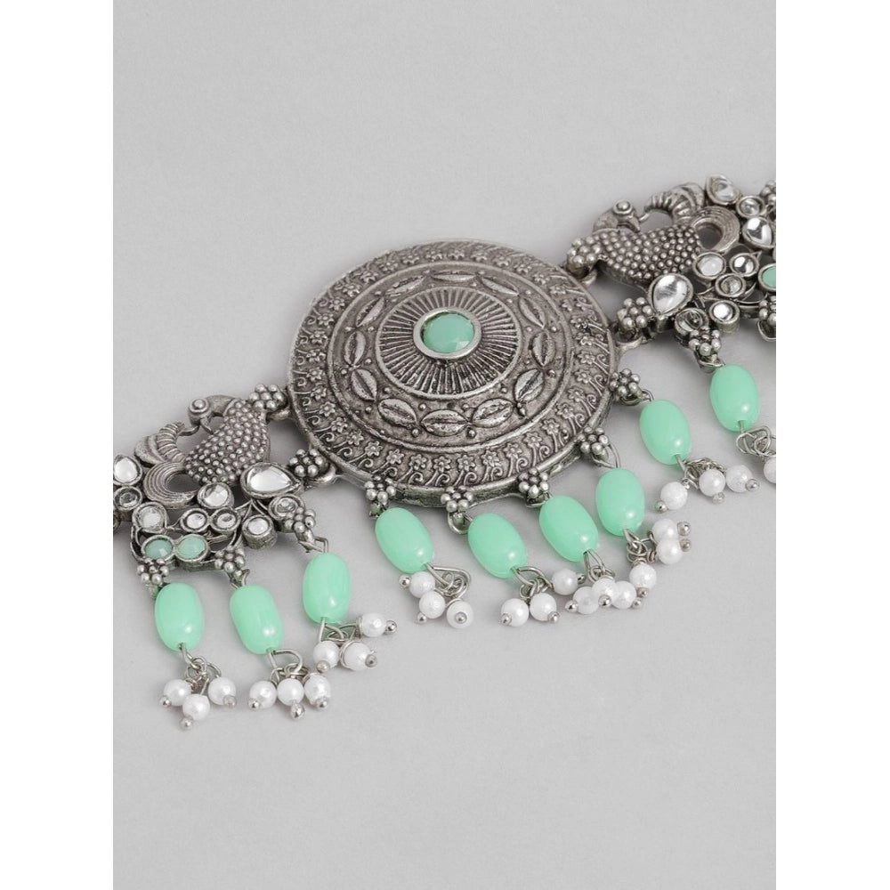 Amfyn Women's Rose Gold Plated Alloy Necklace & Earings Set (Light Green)