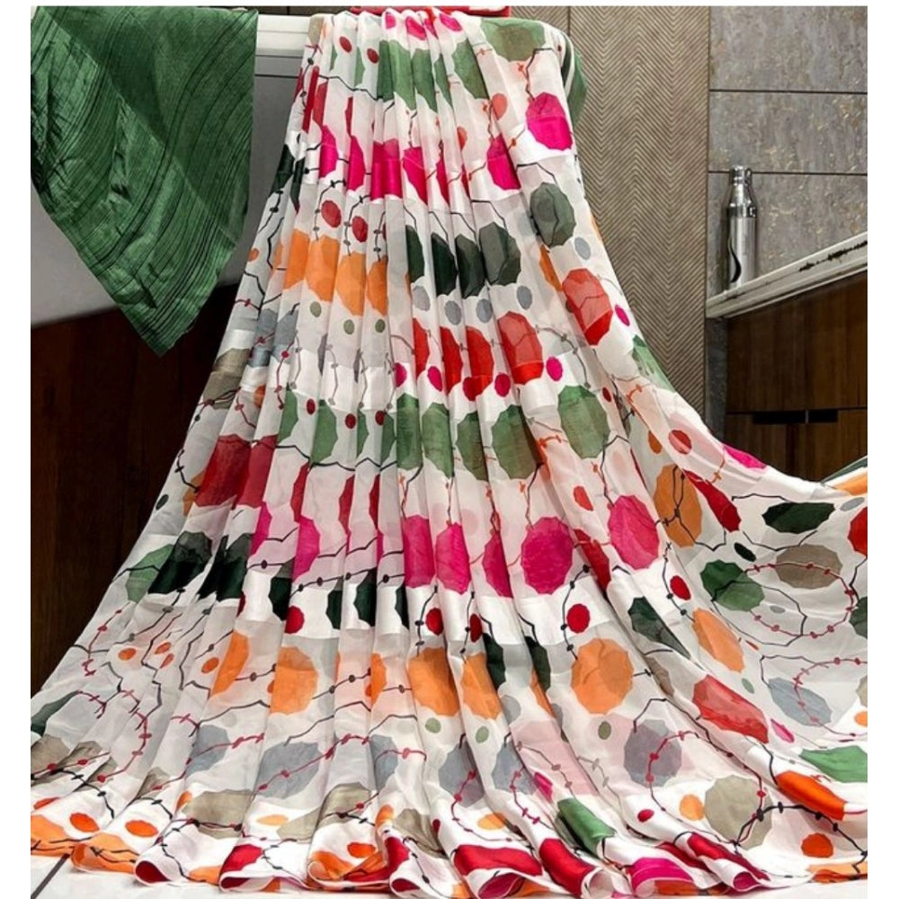 Women's Sattin Patta Printed Saree With Unstitched Blouse