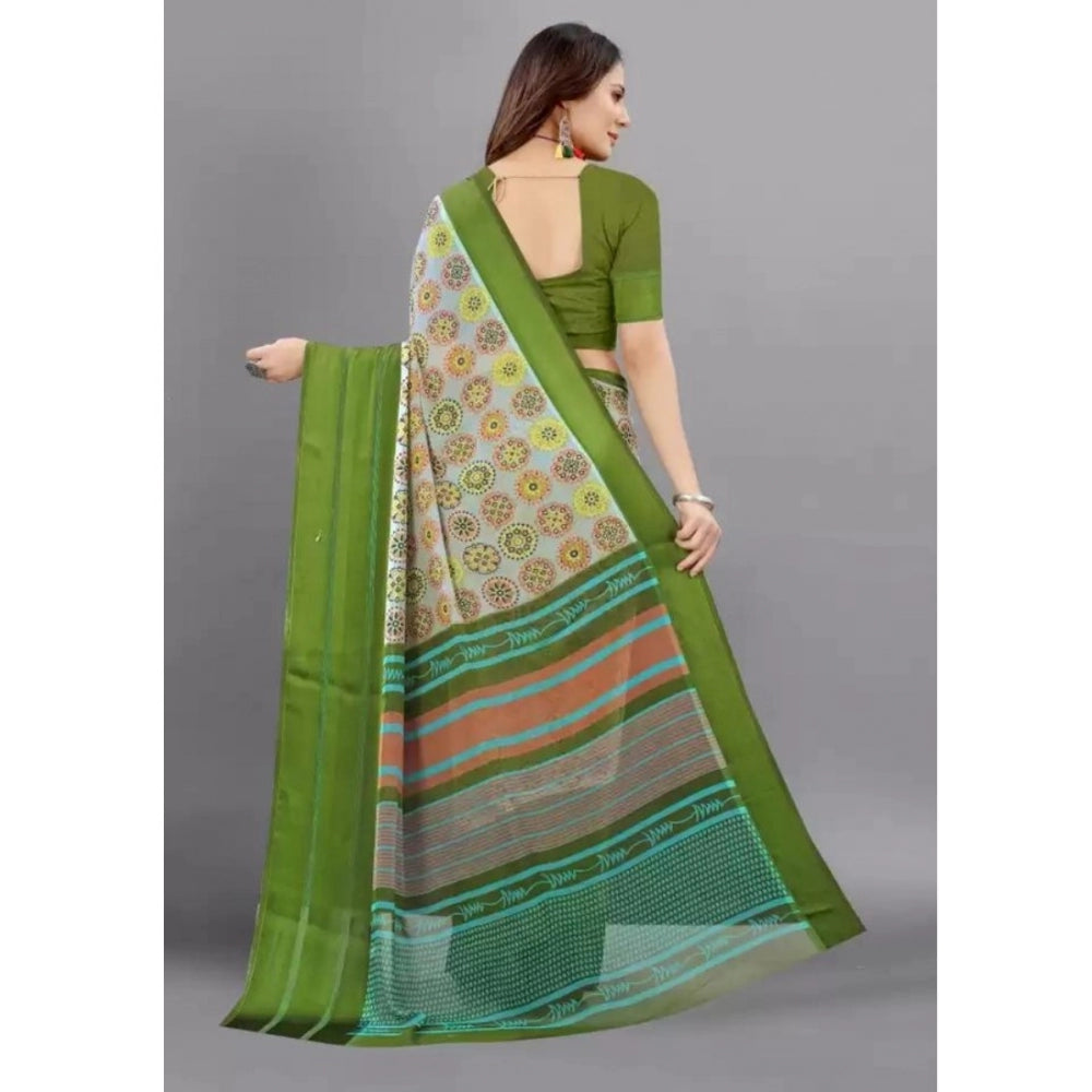 Amfyn Women's Sattin Patta Printed Saree With Unstitched Blouse (Olive, 5-5 Mtrs)