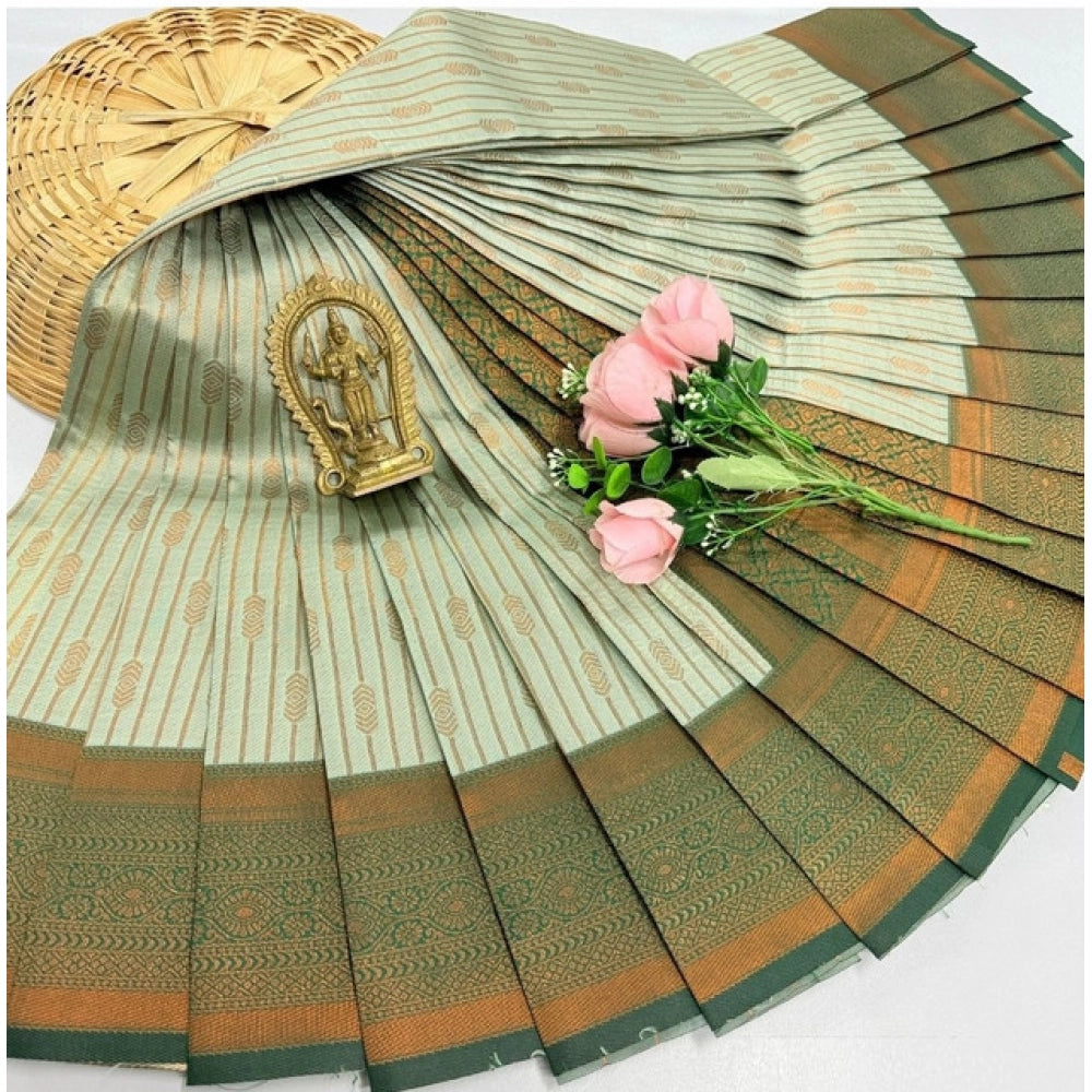 Amfyn Women's Soft Silk Printed Saree With Unstitched Blouse 5.5Mtr (Pista Green)