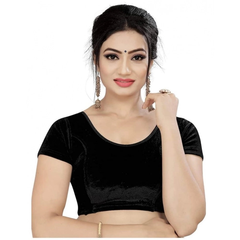 Amfyn Women's Velvet Solid Non Padded Readymade Blouse (Black, Size: Free Size)