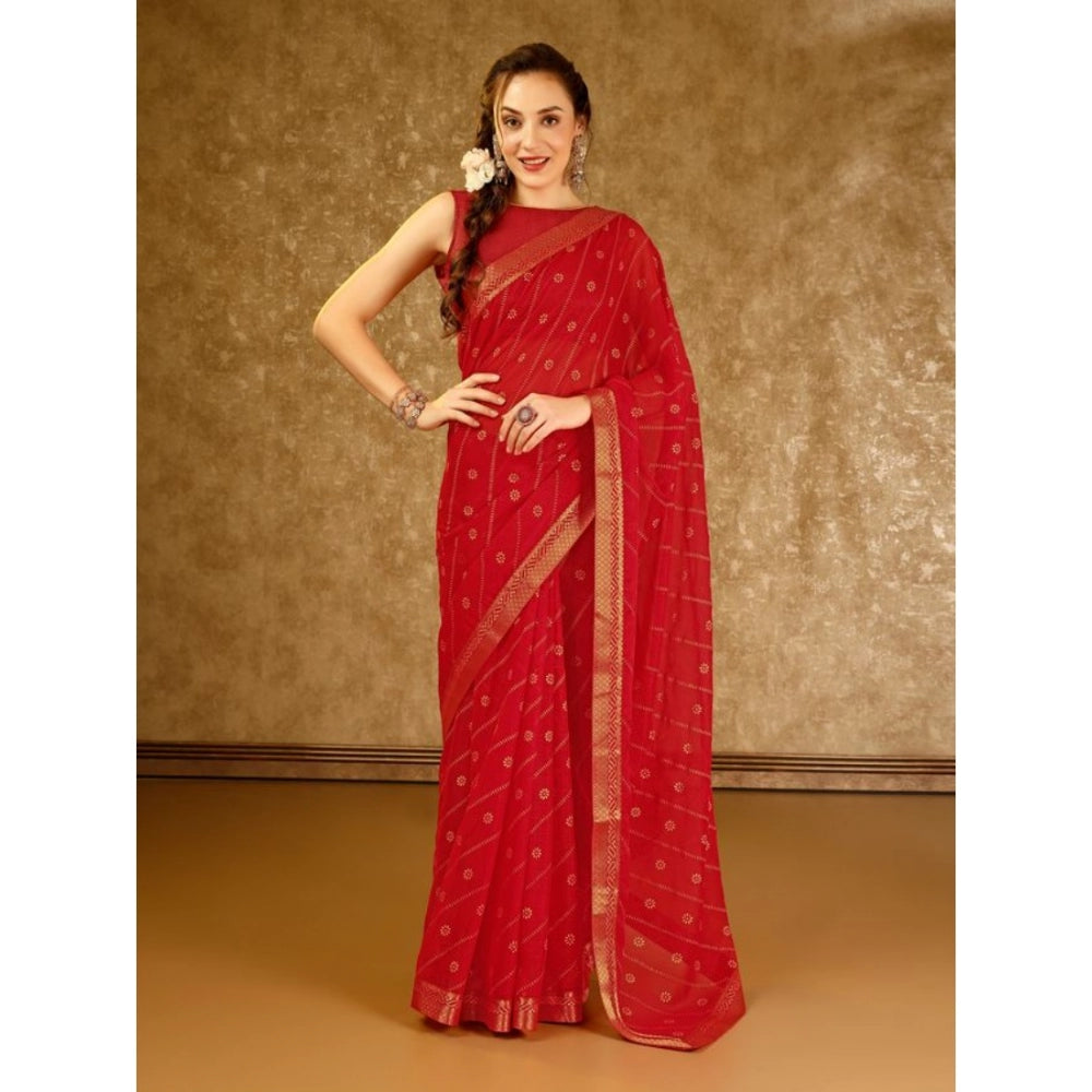 Amfyn Women's Zomto Bandhani Saree With Unstitched Blouse (Red, 5-6 Mtrs)