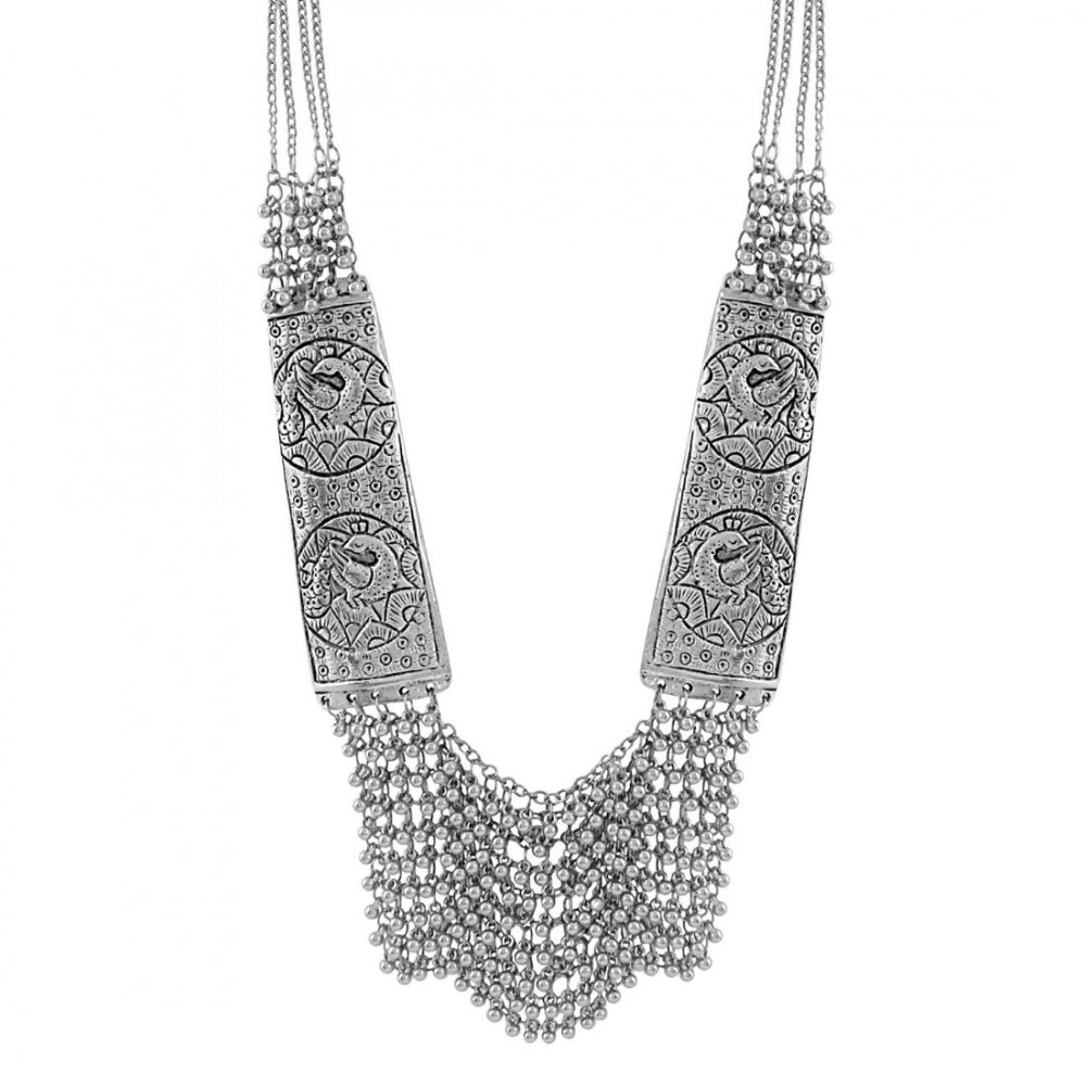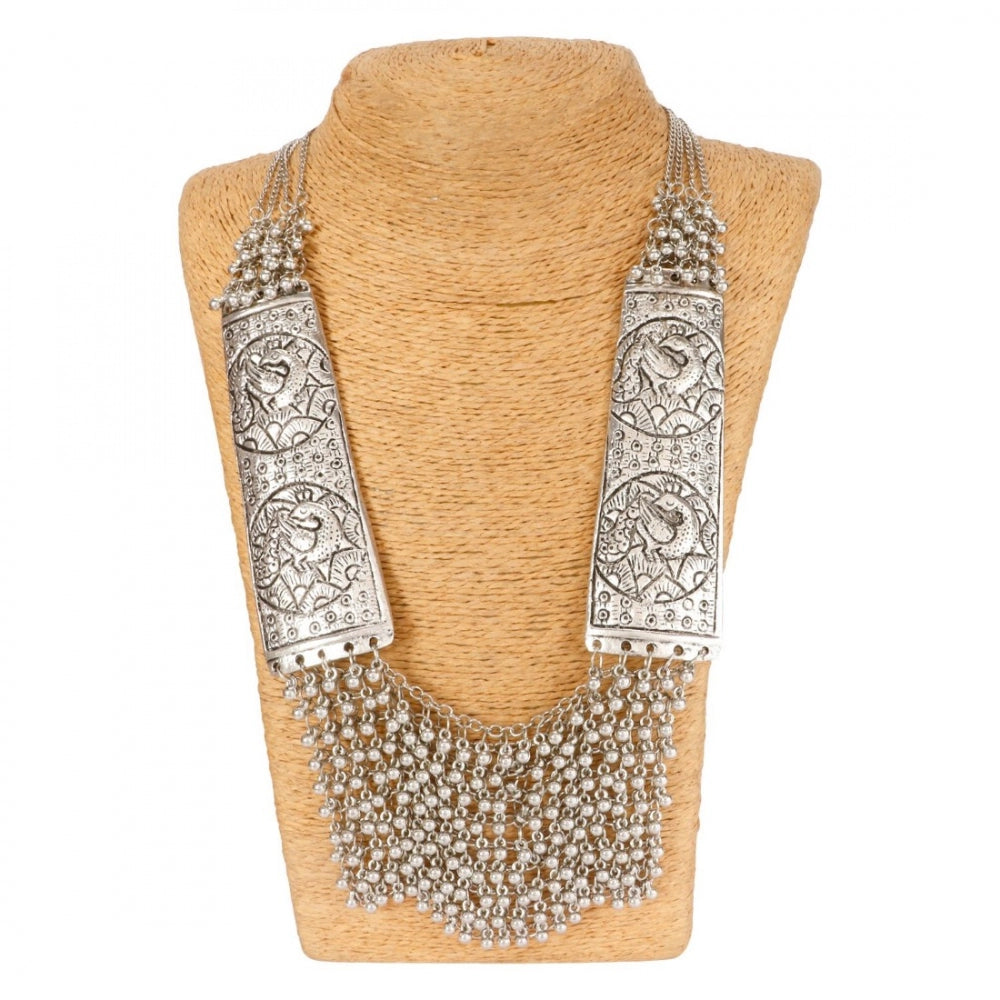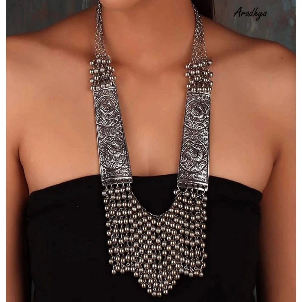 Fashion Antique Oxidised Silver Side Pendant Ghungroo Beads Designer Necklace Jewellery Set For Women