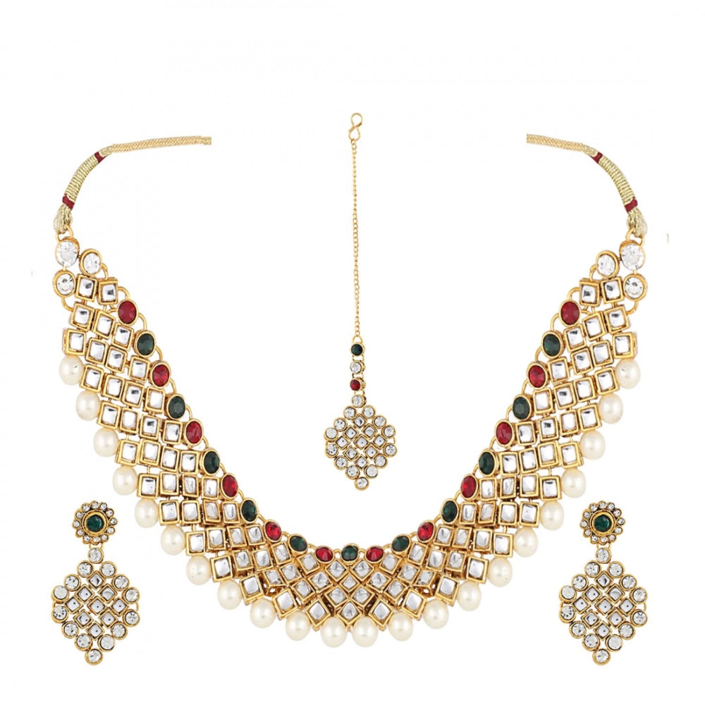 Gold Plated Kundan Jewellery Necklace Set With Earrings,
