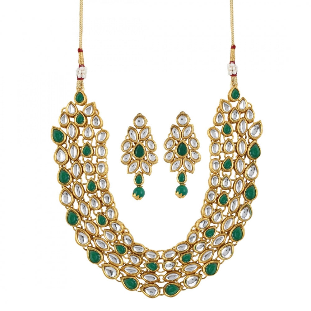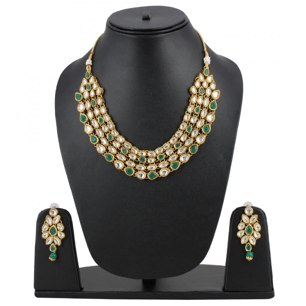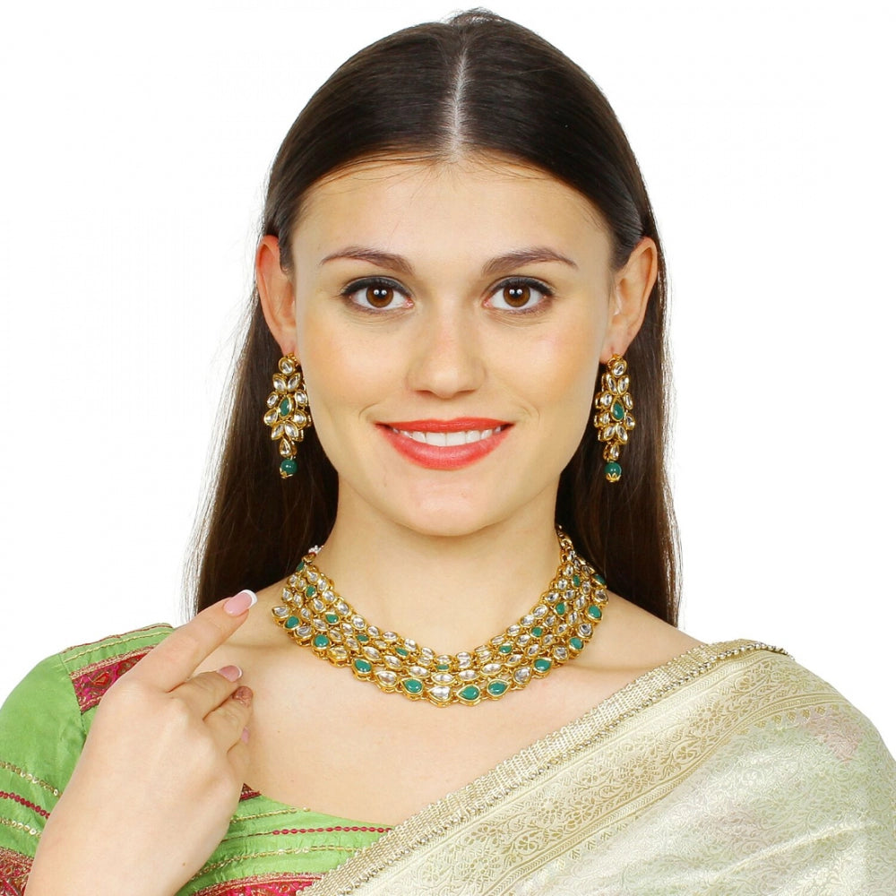 Green Gold Plated Traditional Kundan Necklace with Earrings