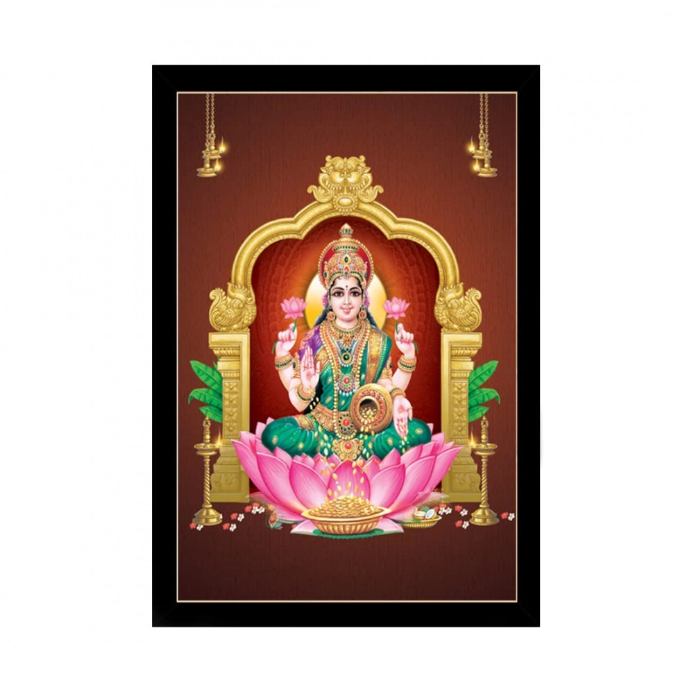 Amfyn Maa Laxmi Painting with Synthetic Photo Frame (Multicolor)