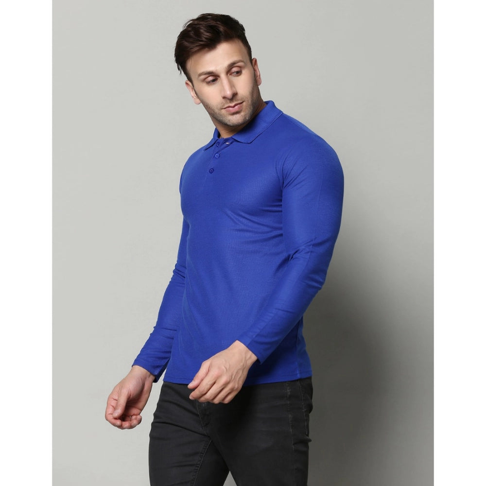 Amfyn Men's Casual Full Sleeve Solid Cotton Blended Polo Neck T-shirt (Royal)