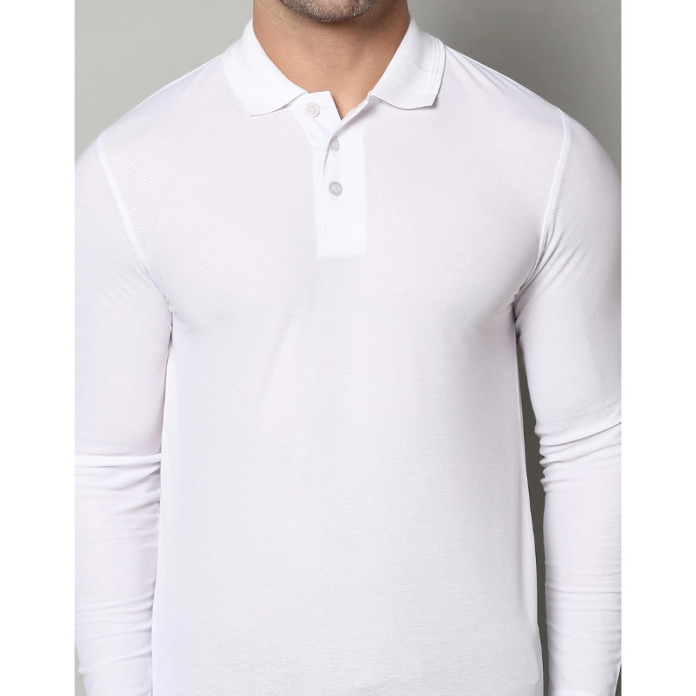 Amfyn Men's Casual Full Sleeve Solid Cotton Blended Polo Neck T-shirt (White)