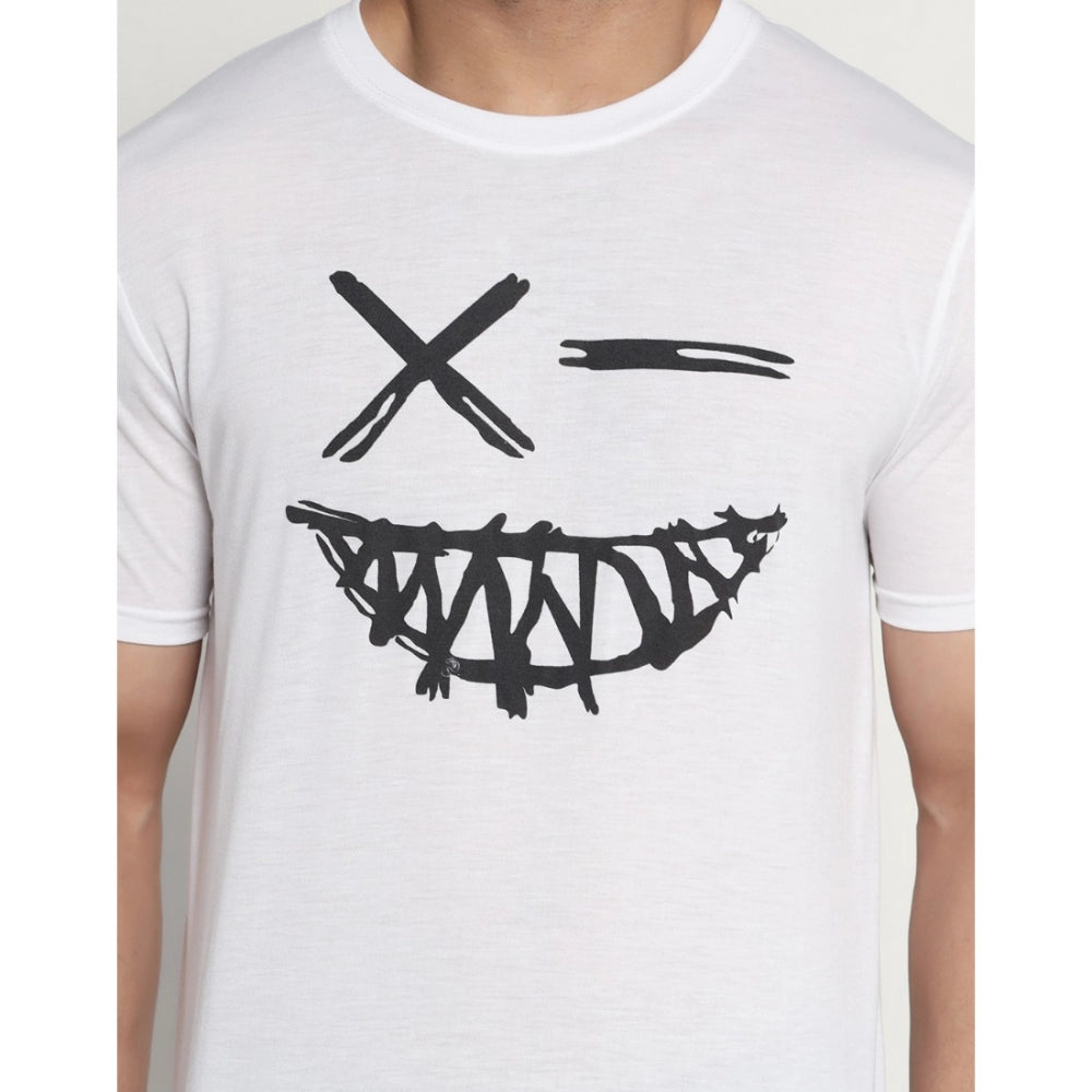 Amfyn Men's Casual Half Sleeve Printed Cotton Blended Round Neck T-shirt (White)