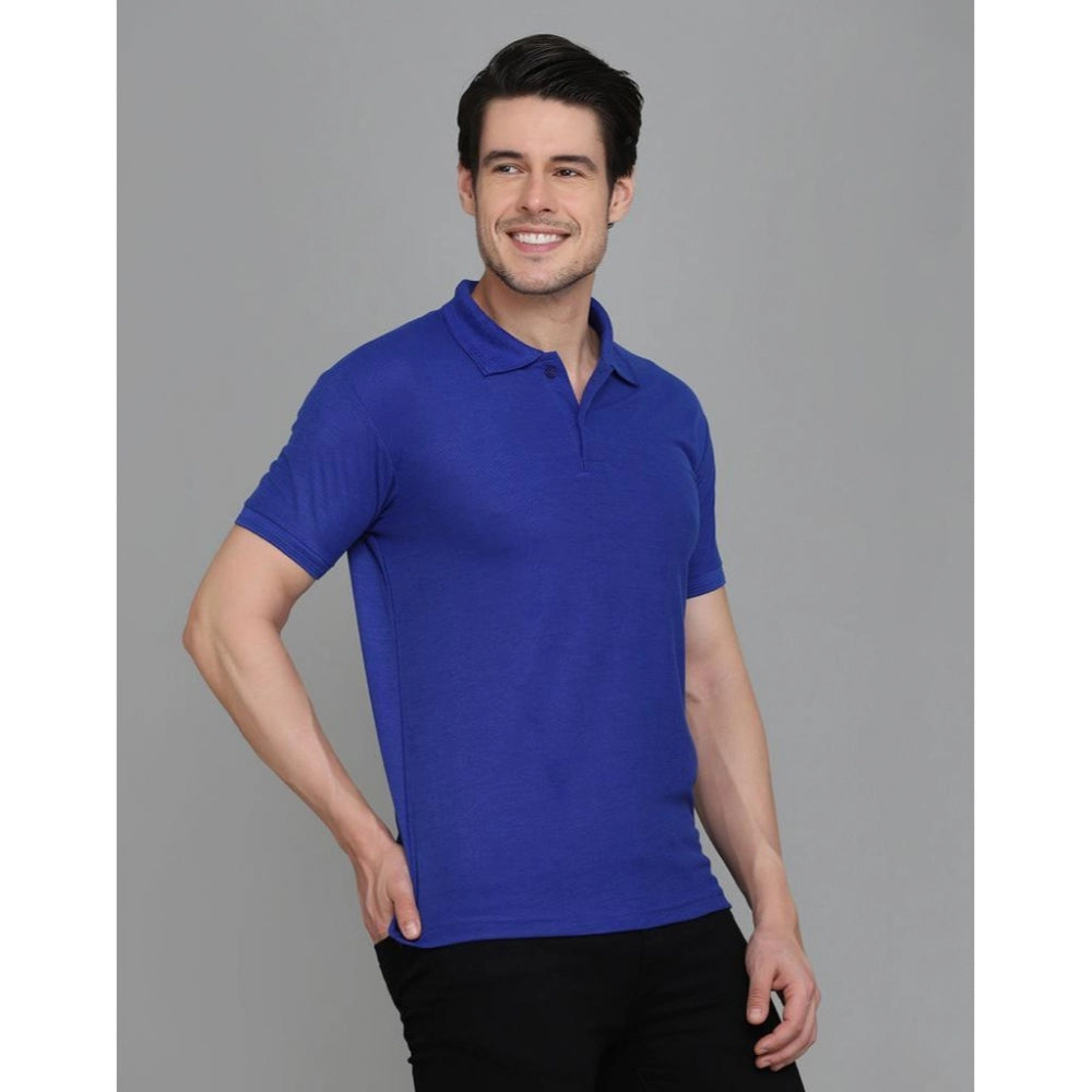 Amfyn Men's Casual Half Sleeve Solid Cotton Blended Polo Neck T-shirt (Blue)