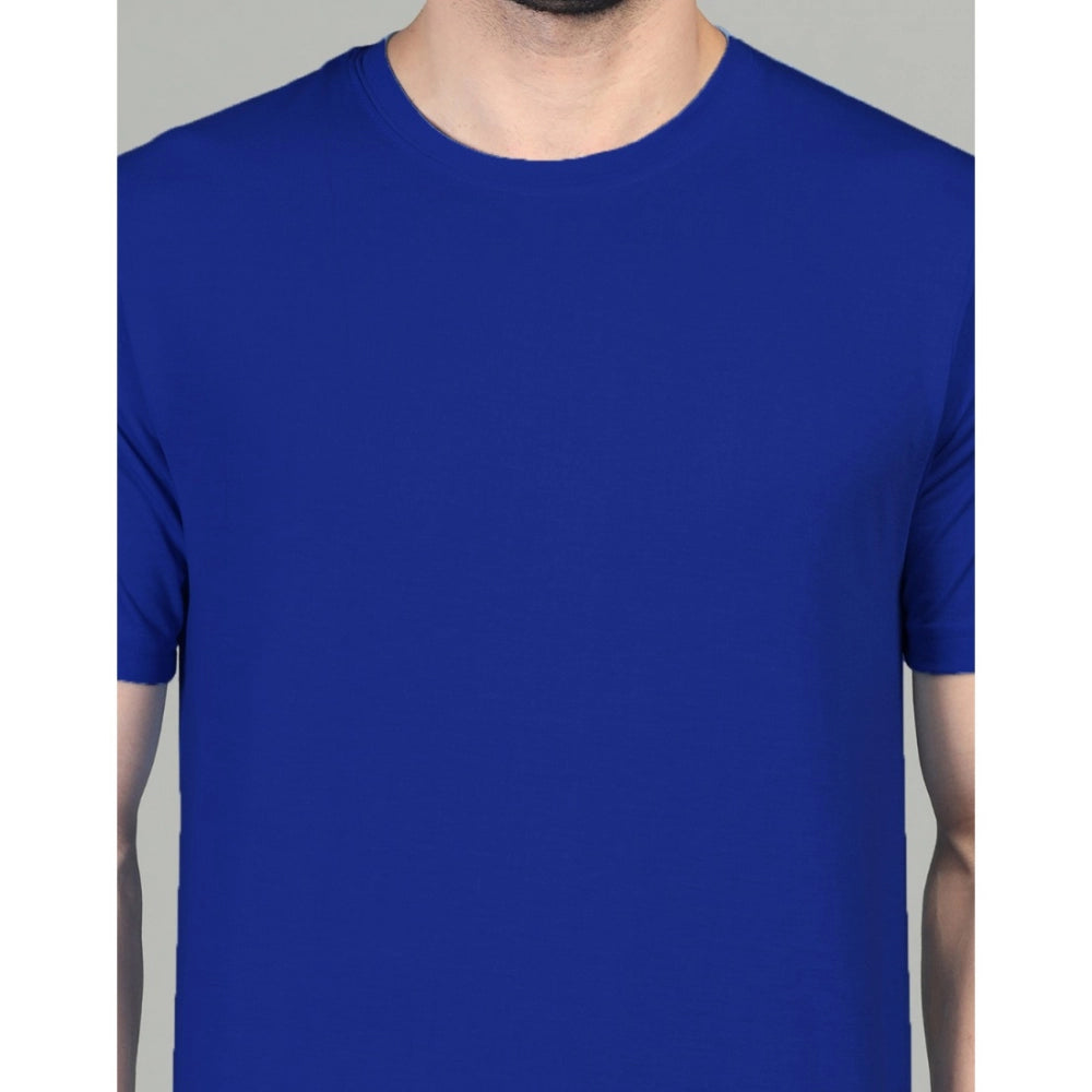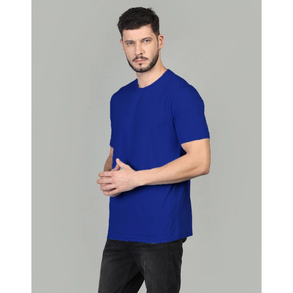 Amfyn Men's Casual Half Sleeve Solid Cotton Blended Round Neck T-shirt (Royal)